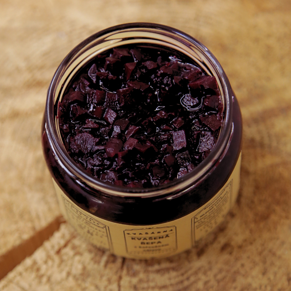 Složení: řepa červená (57 %), fermentační nálev (voda, sůl, bobkový list, jalovec celý, pepř celý, L.Plantarum).