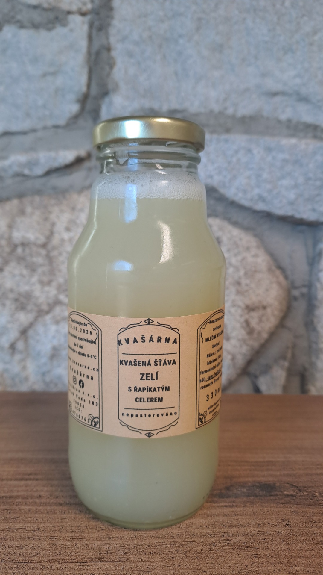 Složení: Nálev z: zelí bílé hlávkové (60 %), fermentační nálev (voda, sůl), celer řapíkatý (4 %), rozmarýn drcený sušený.