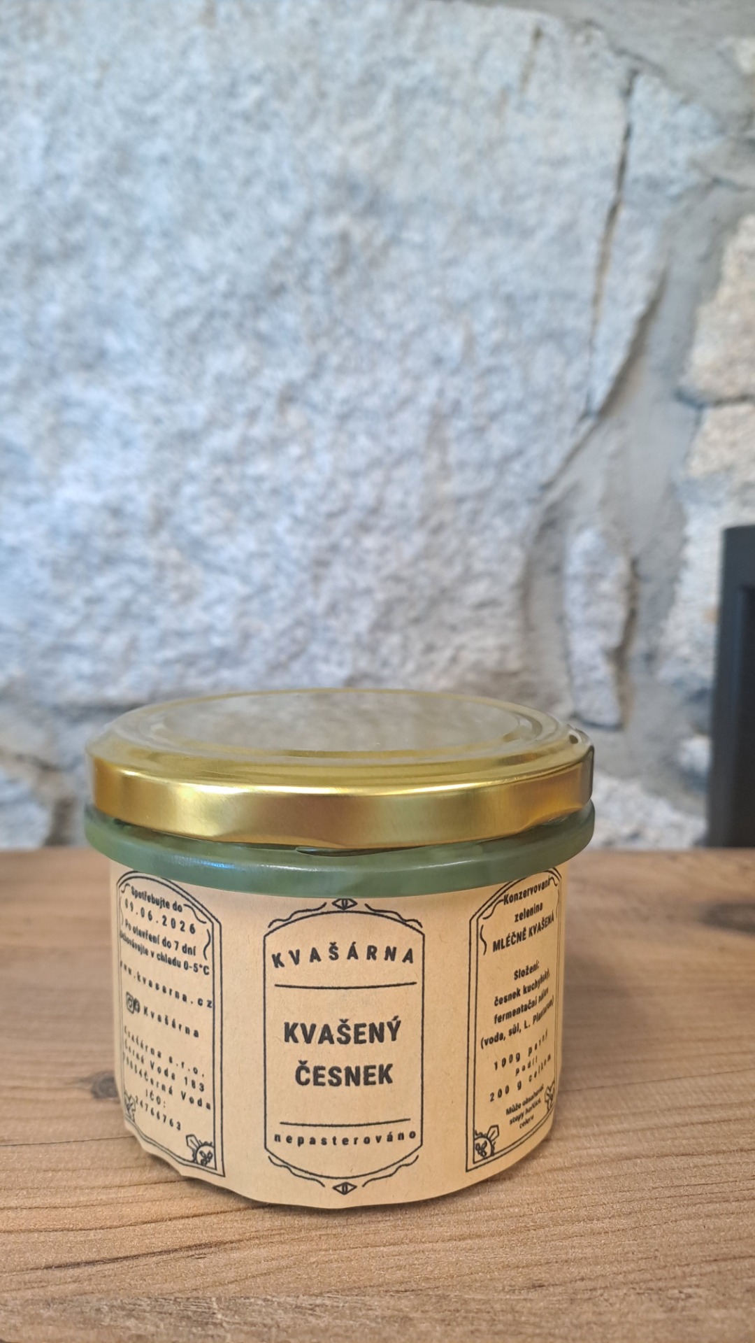 Složení: Česnek kuchyňský, fermentační nálev (voda, sůl, L.Plantarum).